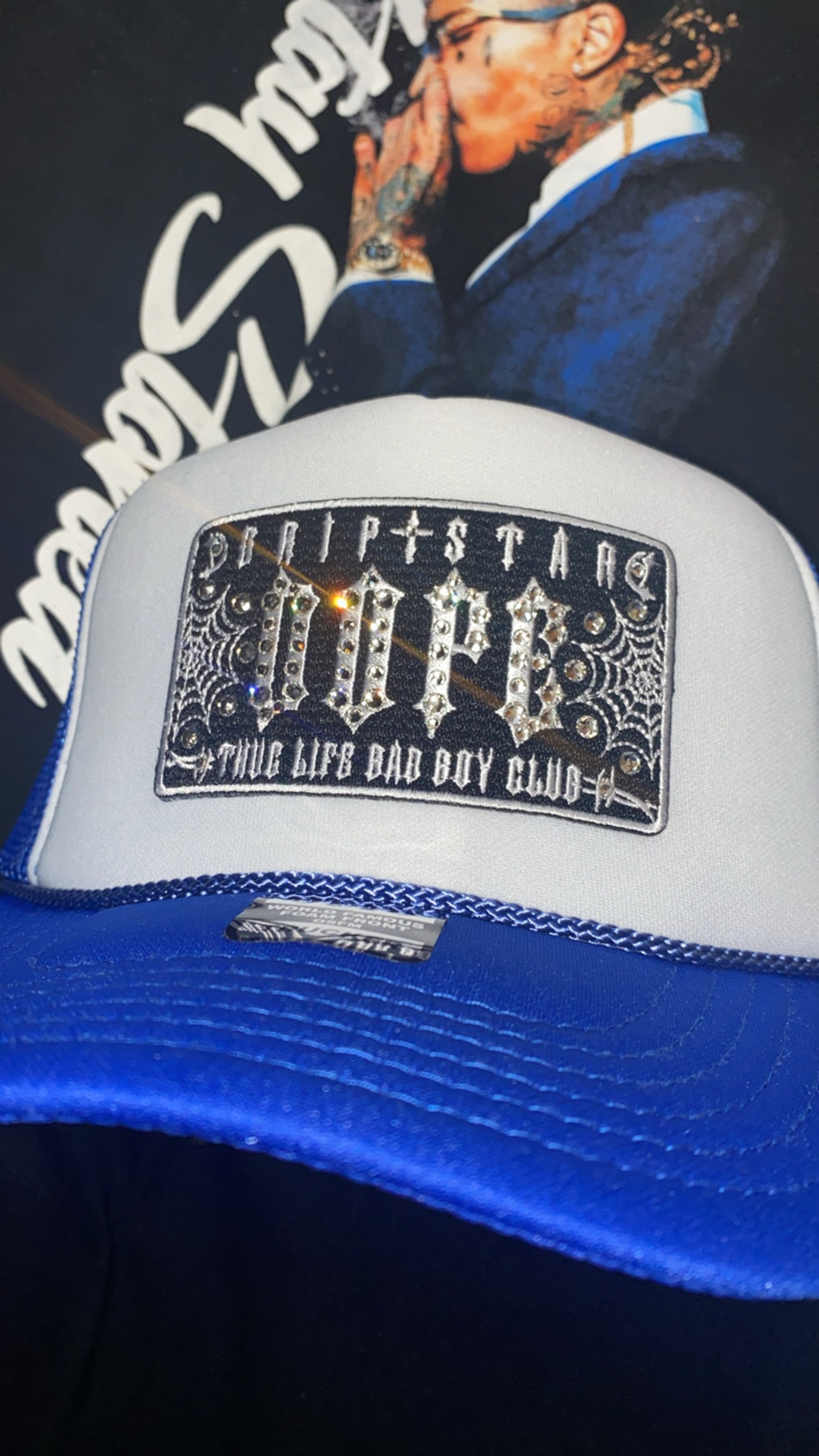 ✟DRIP⛧STAR™︎ "DOPEスワロフスキーカスタム"Mesh cap WT/BK ブルーメッシュキャップ uk drip us drip uk drill us drill trap boom bap street style ヒップホップ ストリート