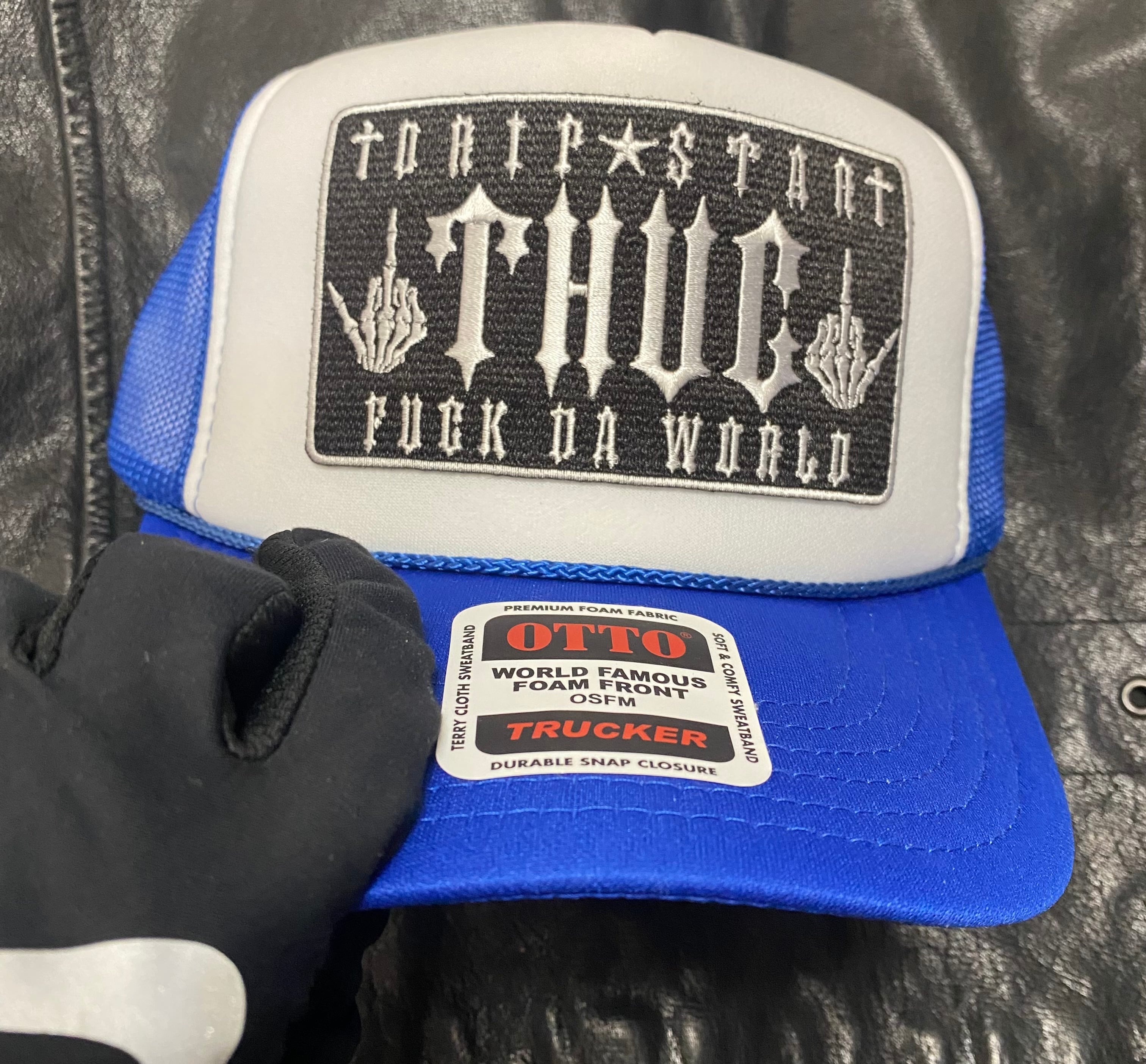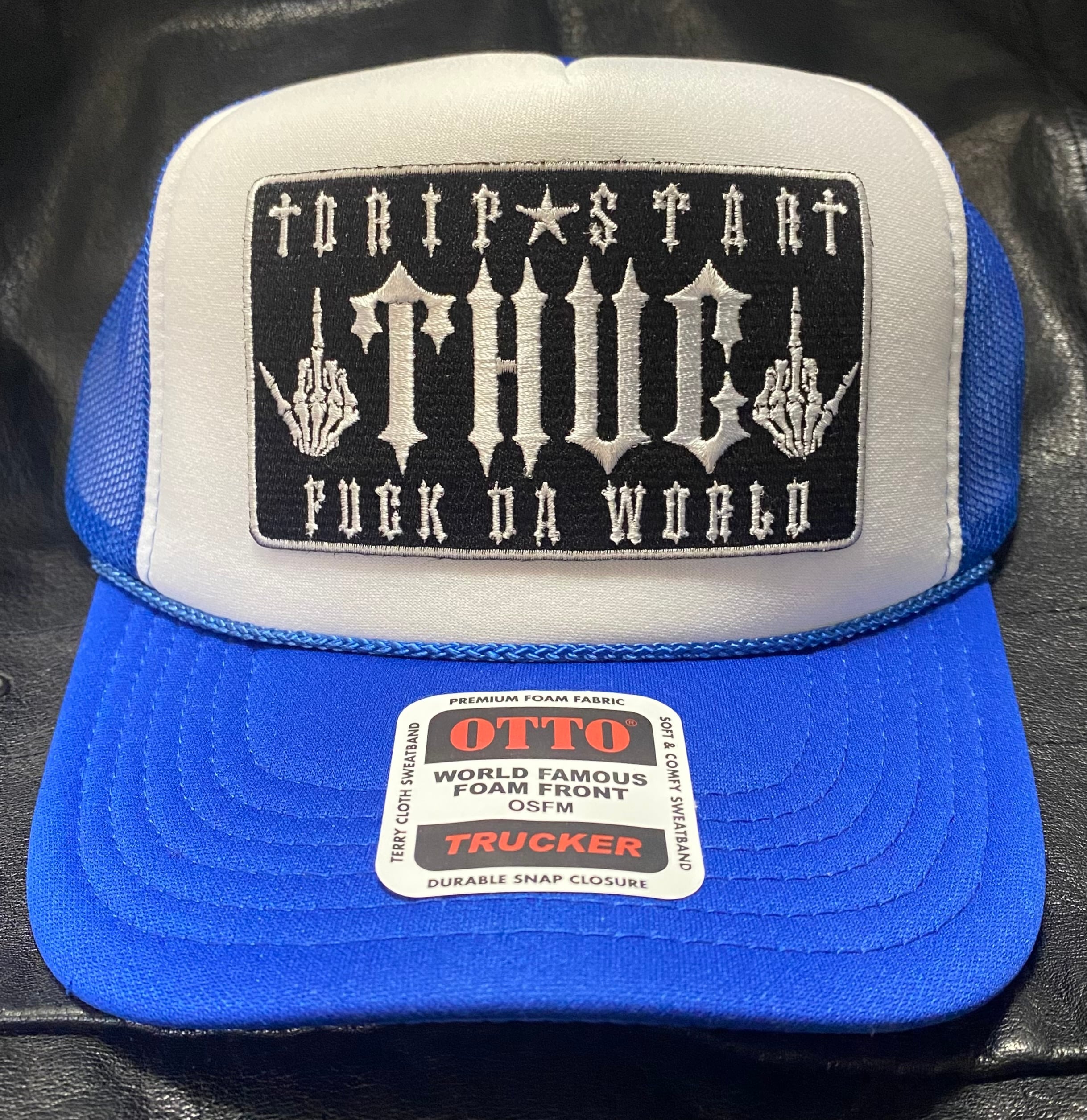 ✟DRIP⛧STAR™︎ "THUG"#2 Mesh cap ホワイト/ロイヤルブルー メッシュキャップ uk drip us drip uk drill us drill trap boom bap street style ヒップホップ ストリート