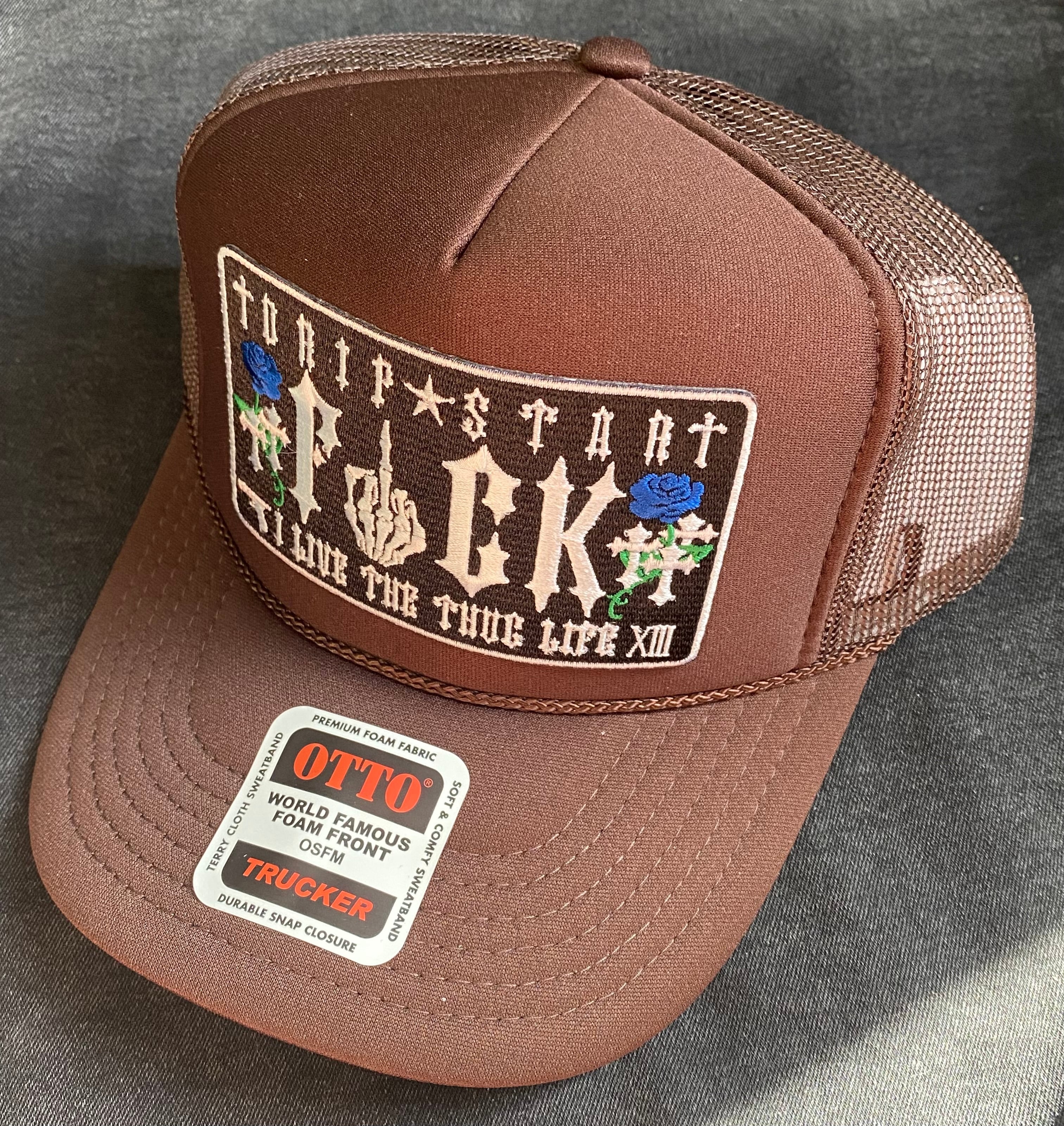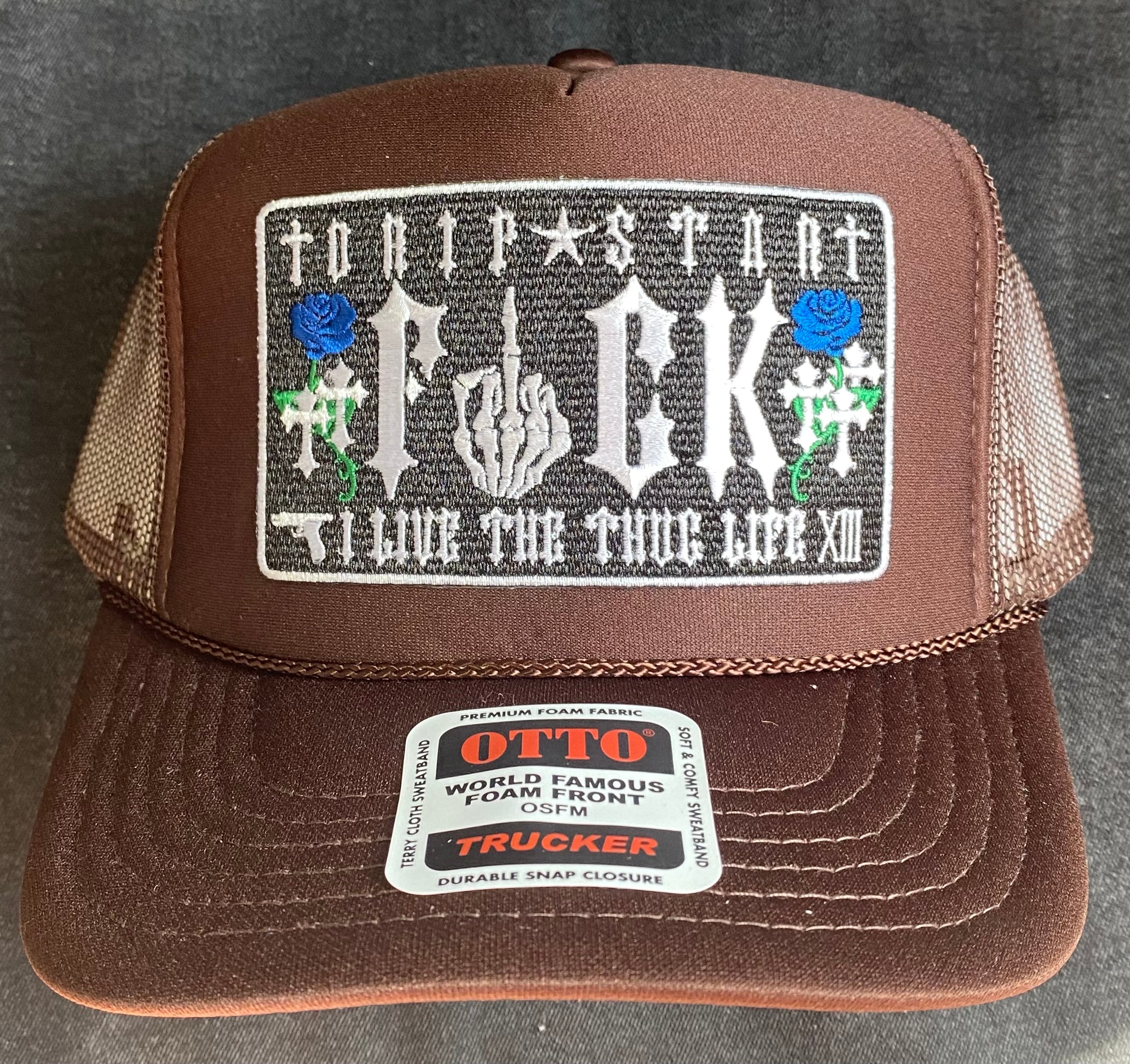 ✟DRIP⛧STAR™︎ "FUCK" Blue rose ver. Mesh cap WT/BR メッシュキャップ uk drip us drip uk drill us drill trap boom bap street style ヒップホップ ストリート タンブラウン 茶色