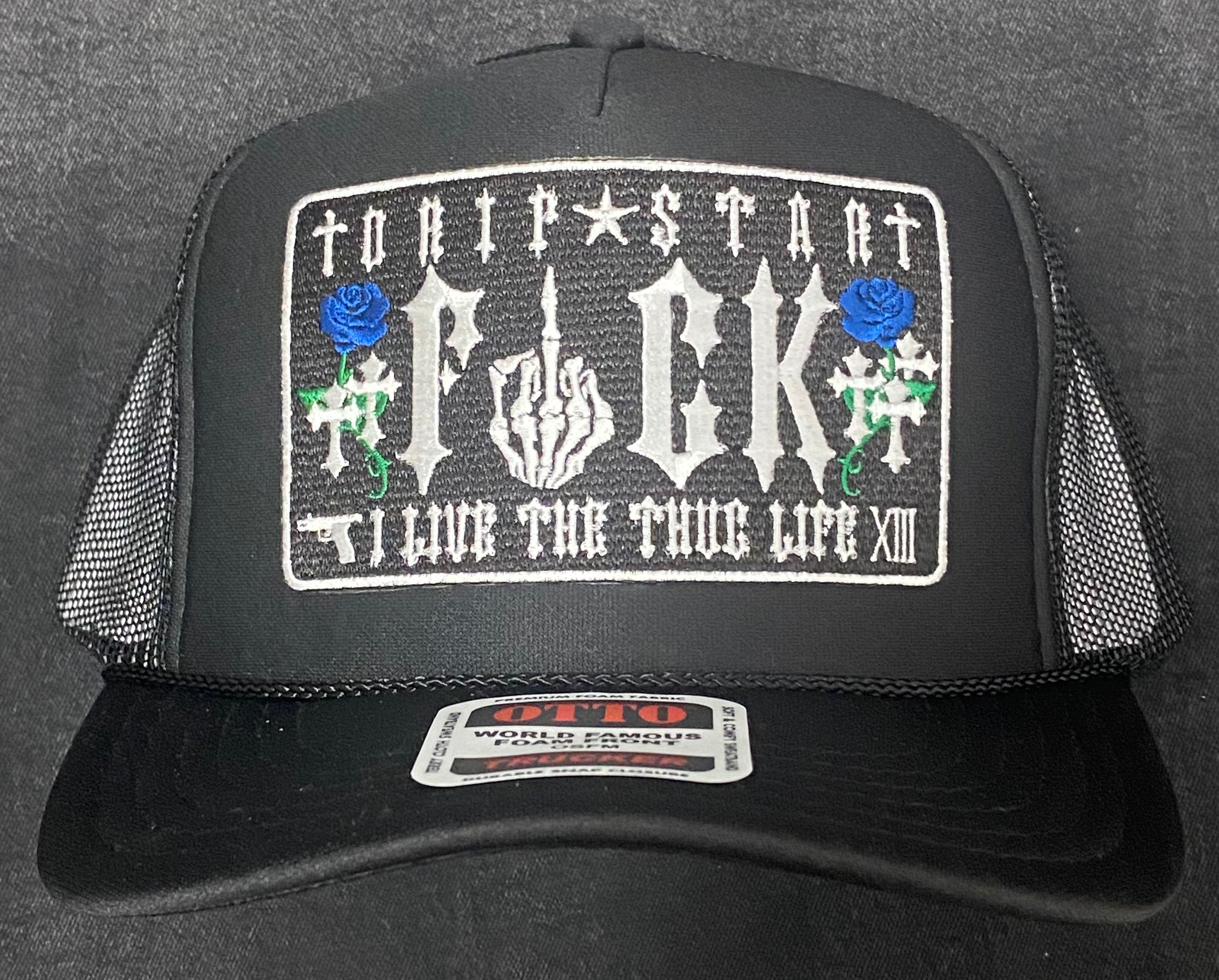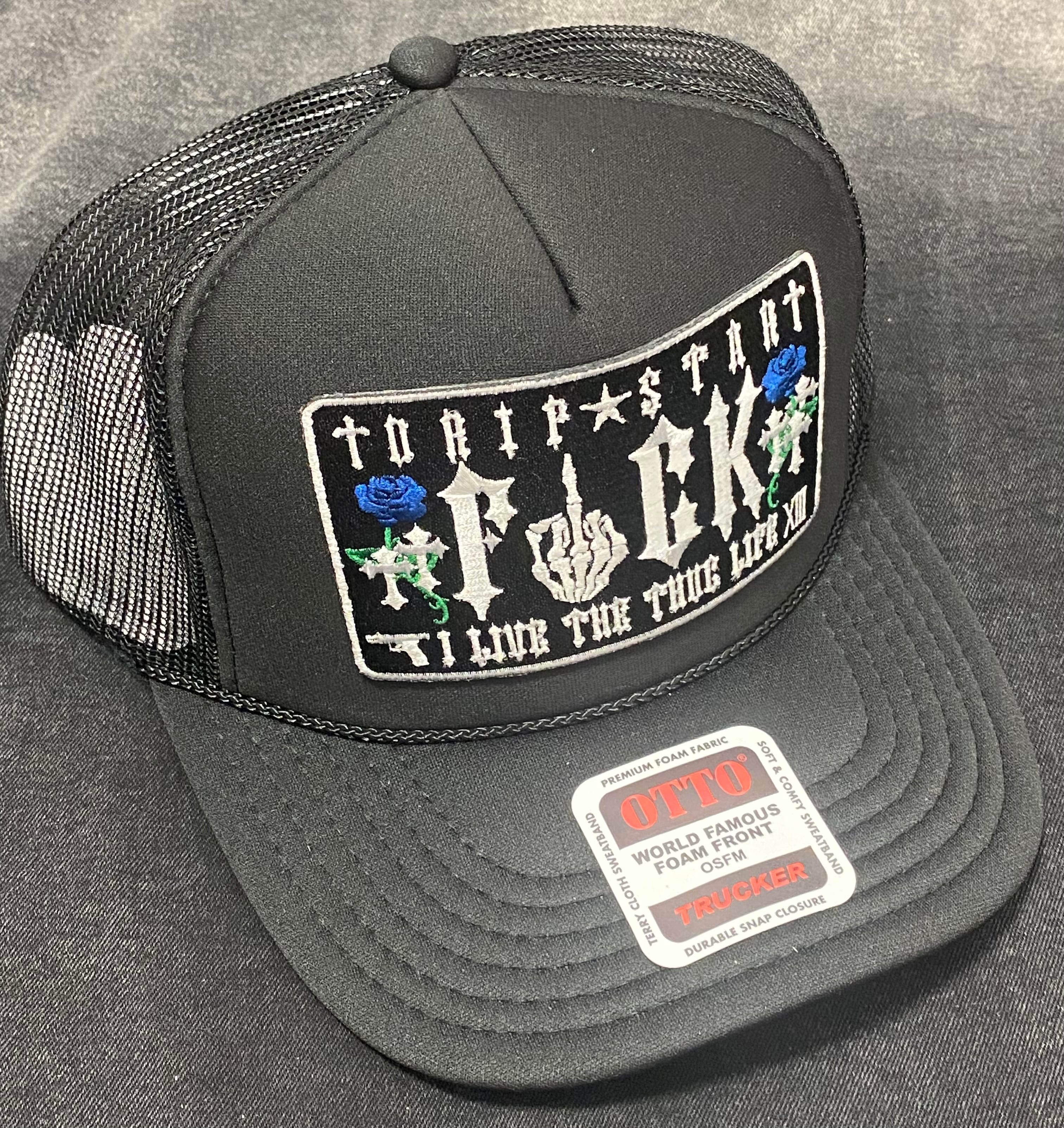 ✟DRIP⛧STAR™︎ "FUCK" Blue rose ver. Mesh cap BK/BK メッシュキャップ uk drip us drip uk drill us drill trap boom bap street style ヒップホップ ストリート