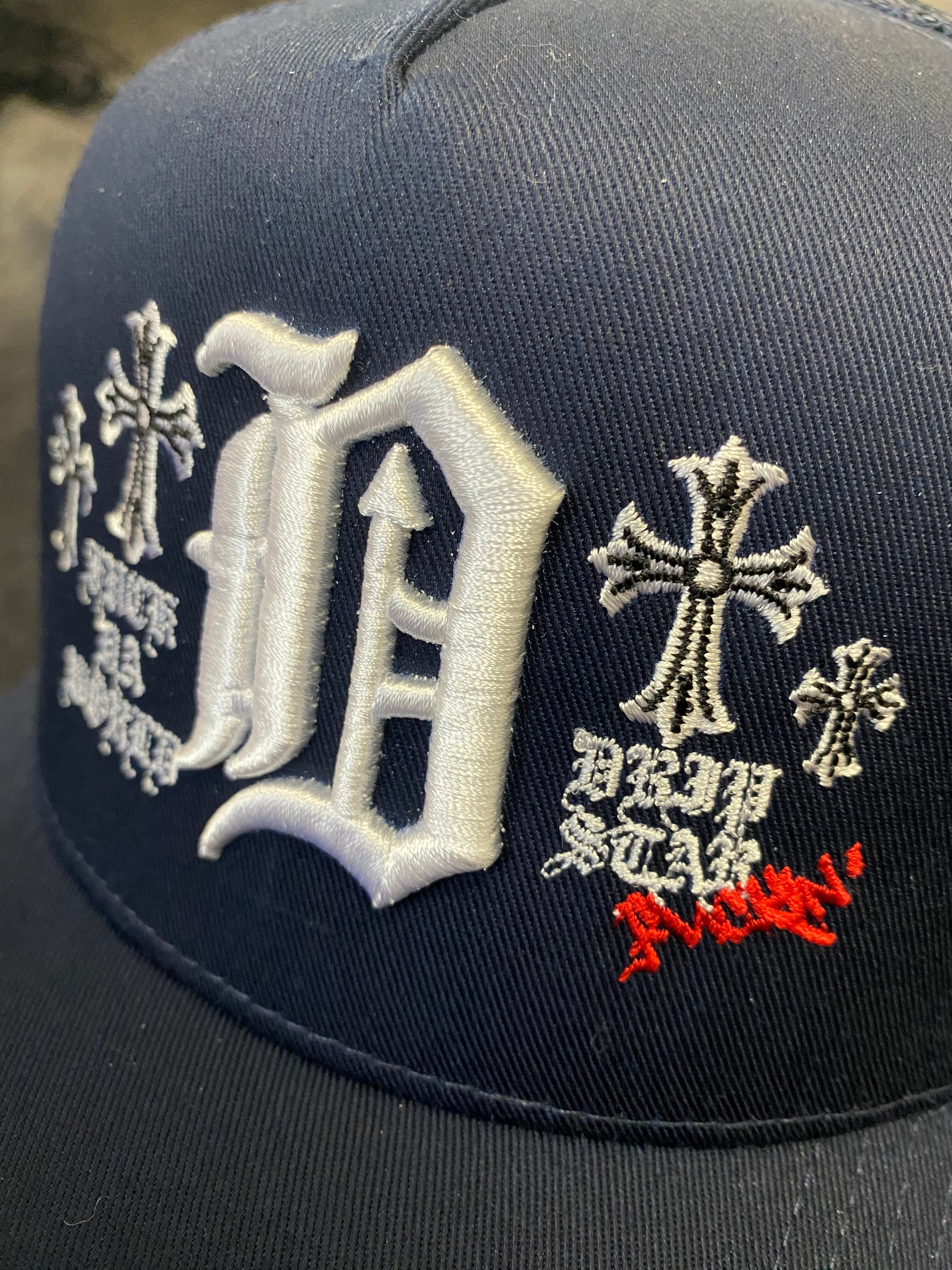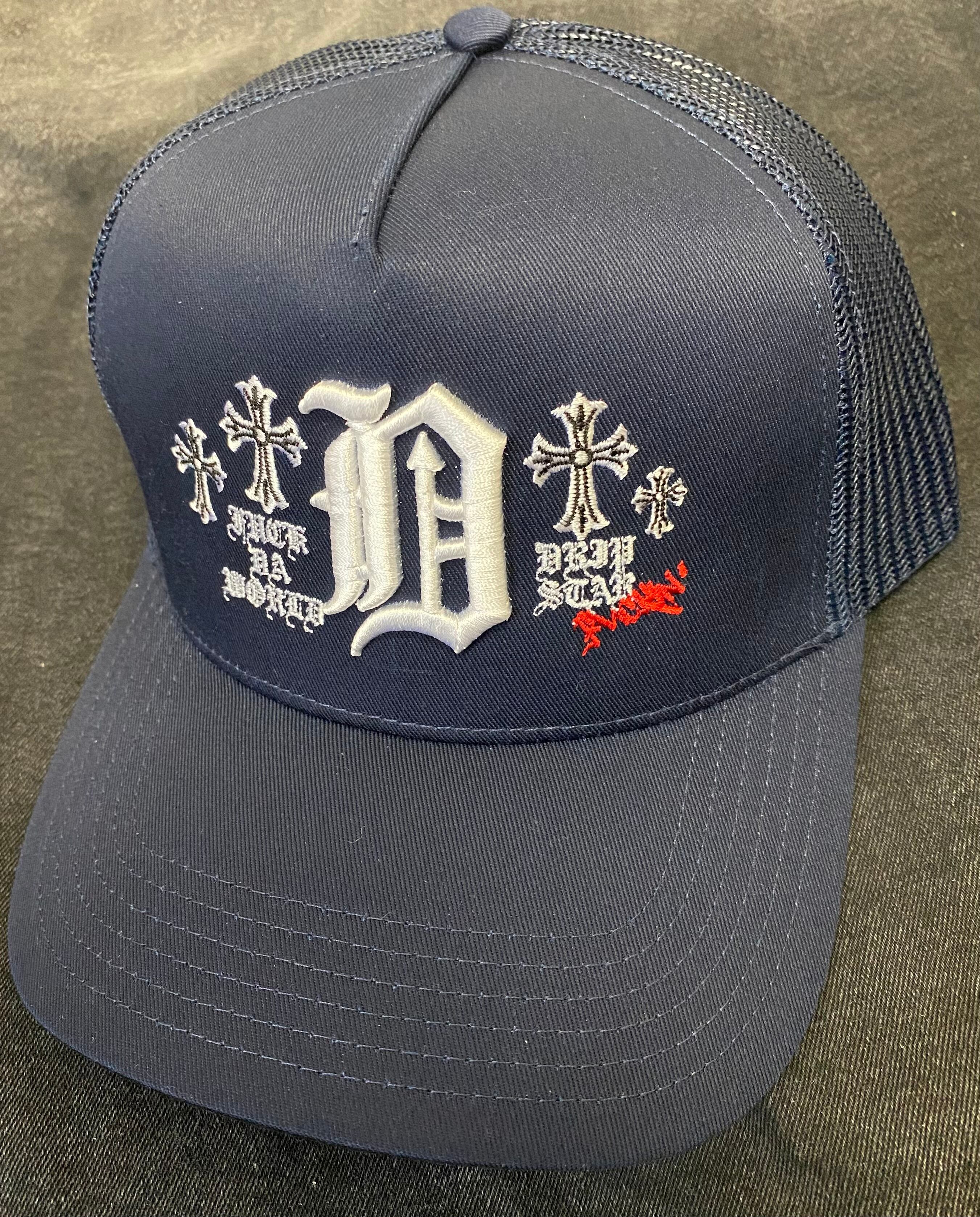 ✟DRIP⛧STAR™︎ "-D-CRO$$" 5パネルツイルcap ネイビー メッシュ キャップ uk drip us drip uk drill us drill trap boom bap street style ヒップホップ ストリート