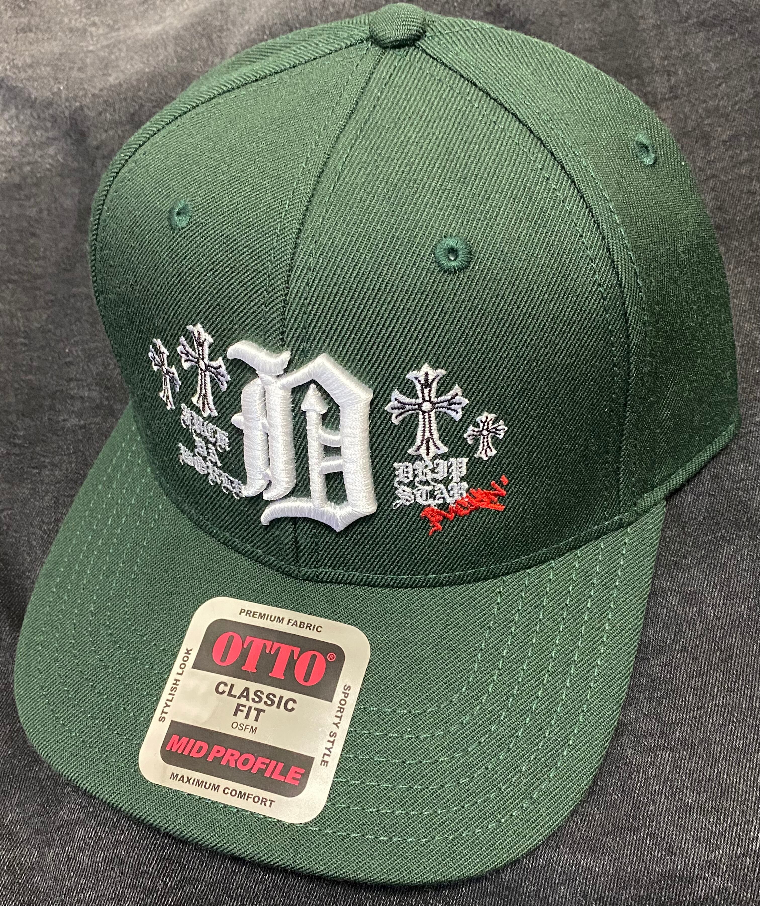 ✟DRIP⛧STAR™︎ "-D-CRO$$" 6パネルcap ダークグリーン キャップ カーブバイザー ミッドプロファイルベースボール ウールブレンド キャップ uk drip us drip uk drill us drill trap boom bap street style ヒップホップ ストリート