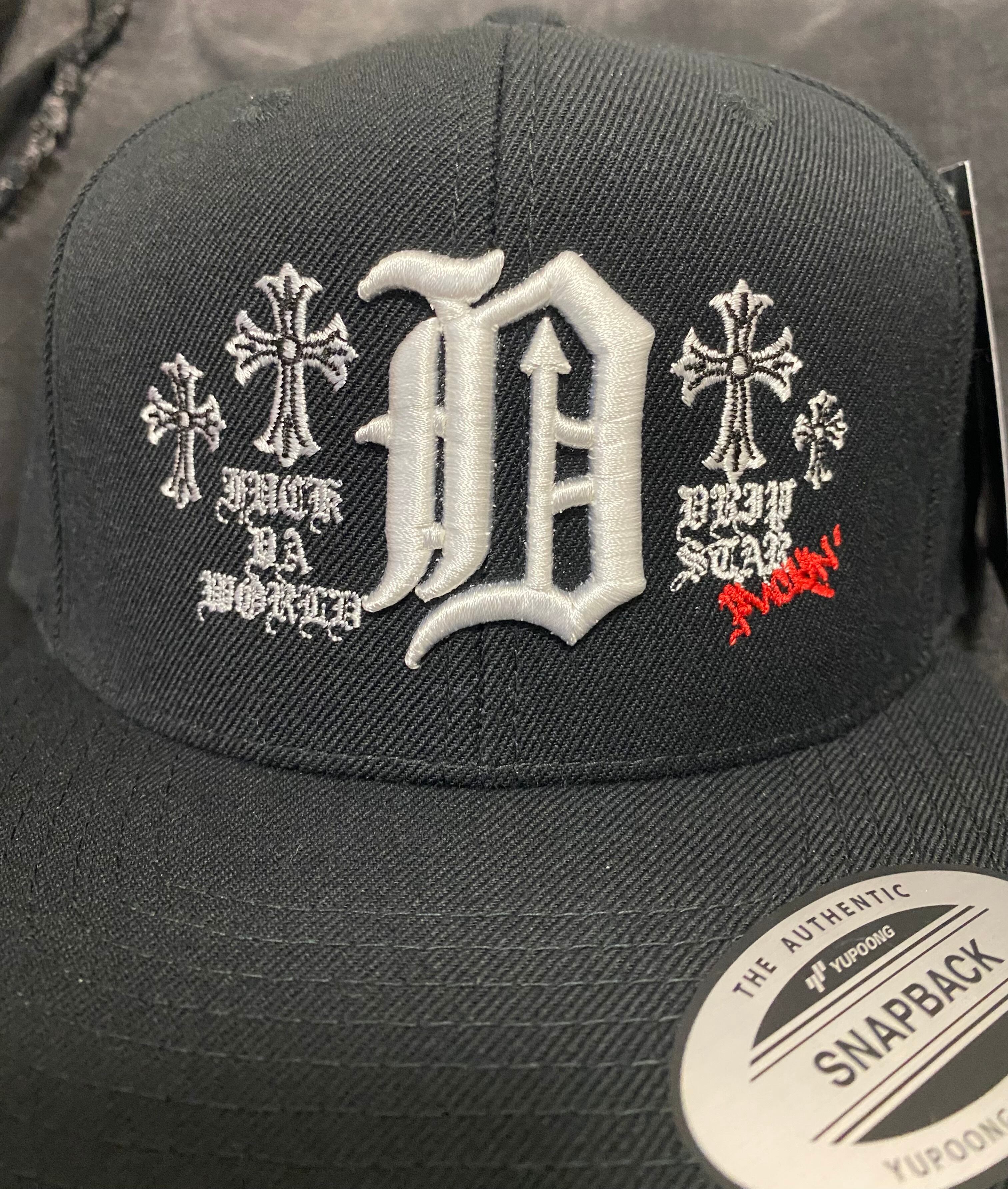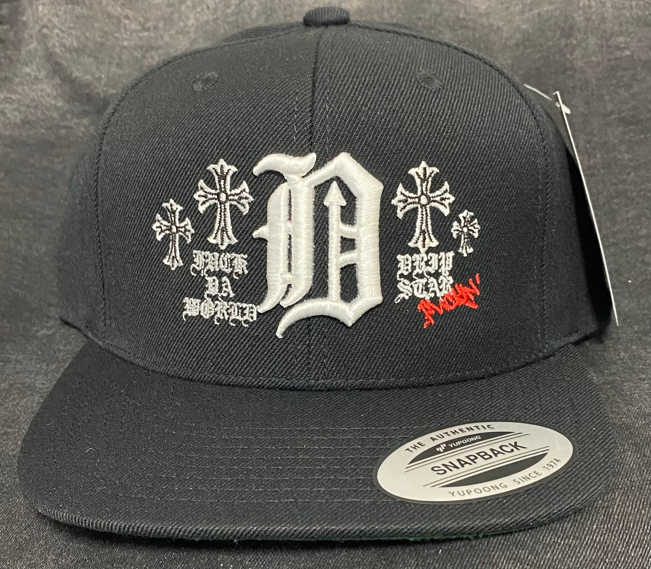 ✟DRIP⛧STAR™︎ "-D-CRO$$" バイザー 6パネルcap ブラック キャップ ミッドプロファイルベースボール ウールブレンド キャップ uk drip us drip uk drill us drill trap boom bap street style ヒップホップ ストリート