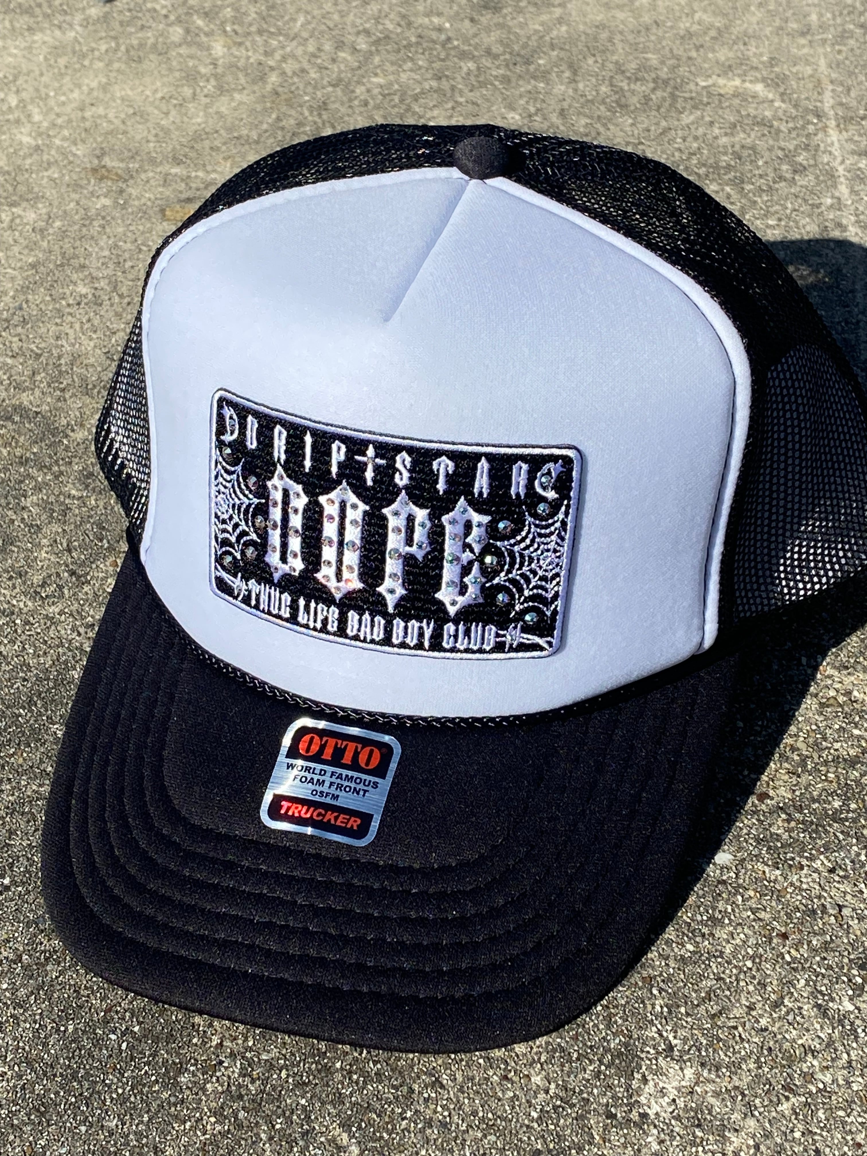 ✟DRIP⛧STAR™︎ "DOPEスワロフスキーカスタム"Mesh cap WT/BK ブラックメッシュキャップ uk drip us drip uk drill us drill trap boom bap street style ヒップホップ ストリート