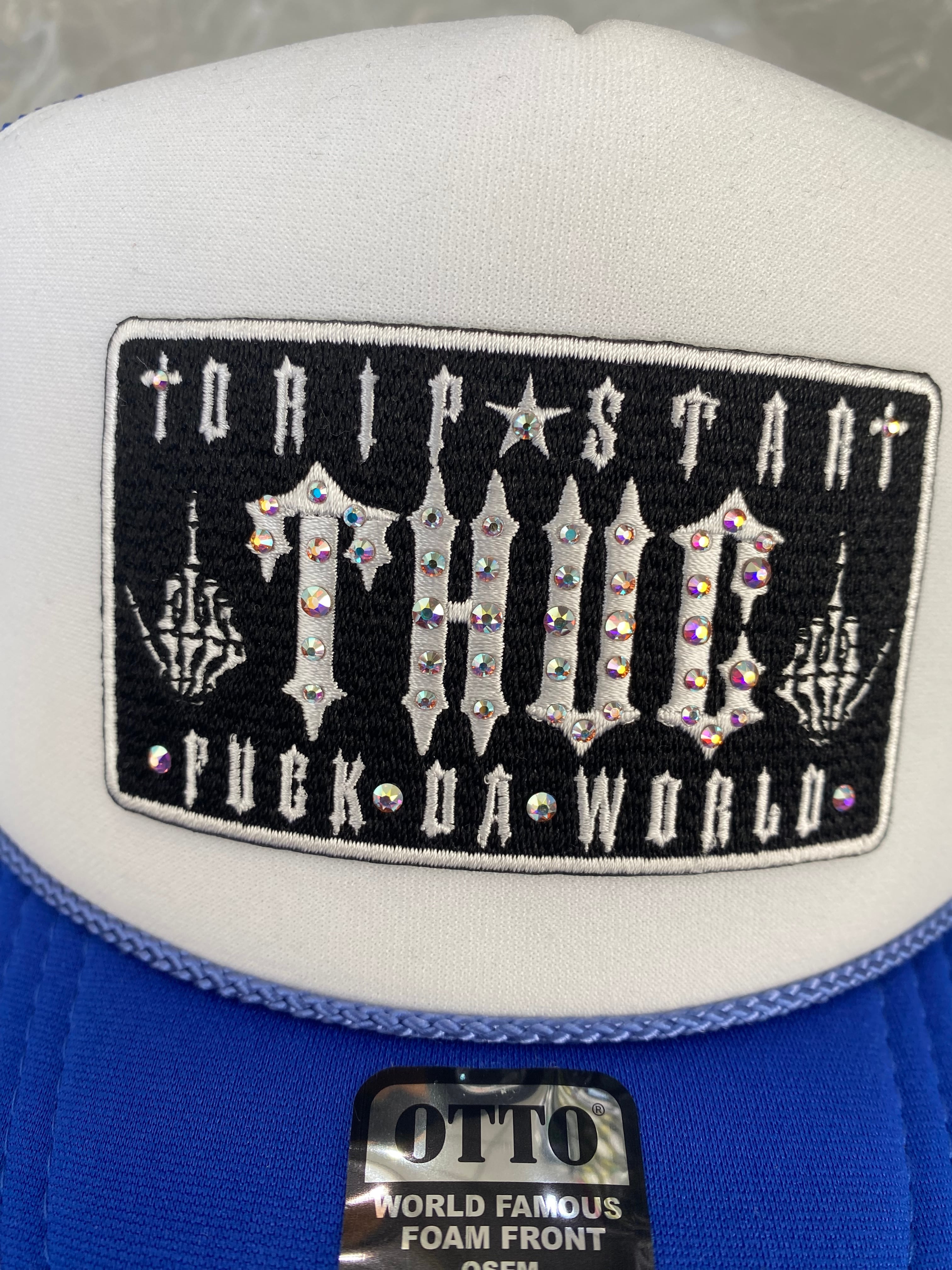 ✟DRIP⛧STAR™︎ "THUG"#1 スワロフスキーカスタム Mesh cap WT/BL メッシュキャップ uk drip us drip uk drill us drill trap boom bap street style ヒップホップ ストリート